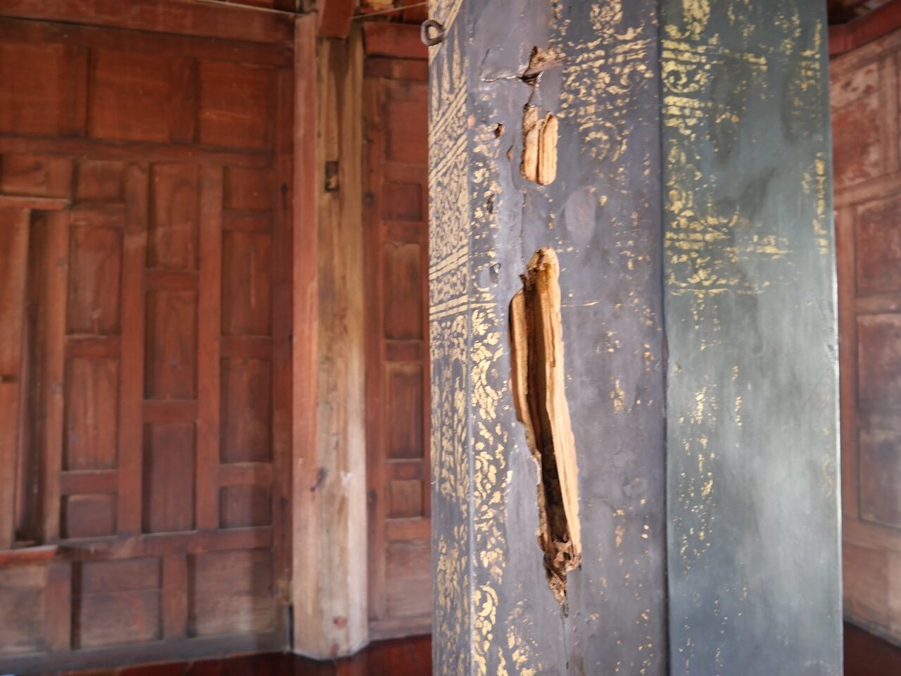 กรมศิลป์ตรวจสอบเสาไม้ ศาลาการเปรียญวัดใหญ่สุวรรณาราม พระตำหนักโบราณสมัยกรุงศรีอยุธยา ‘แตก-ทรุดตัว’ คาดเนื้อไม้เก่า หมดสภาพการใช้งาน เตรียมหาวิธีการซ่อมแซม