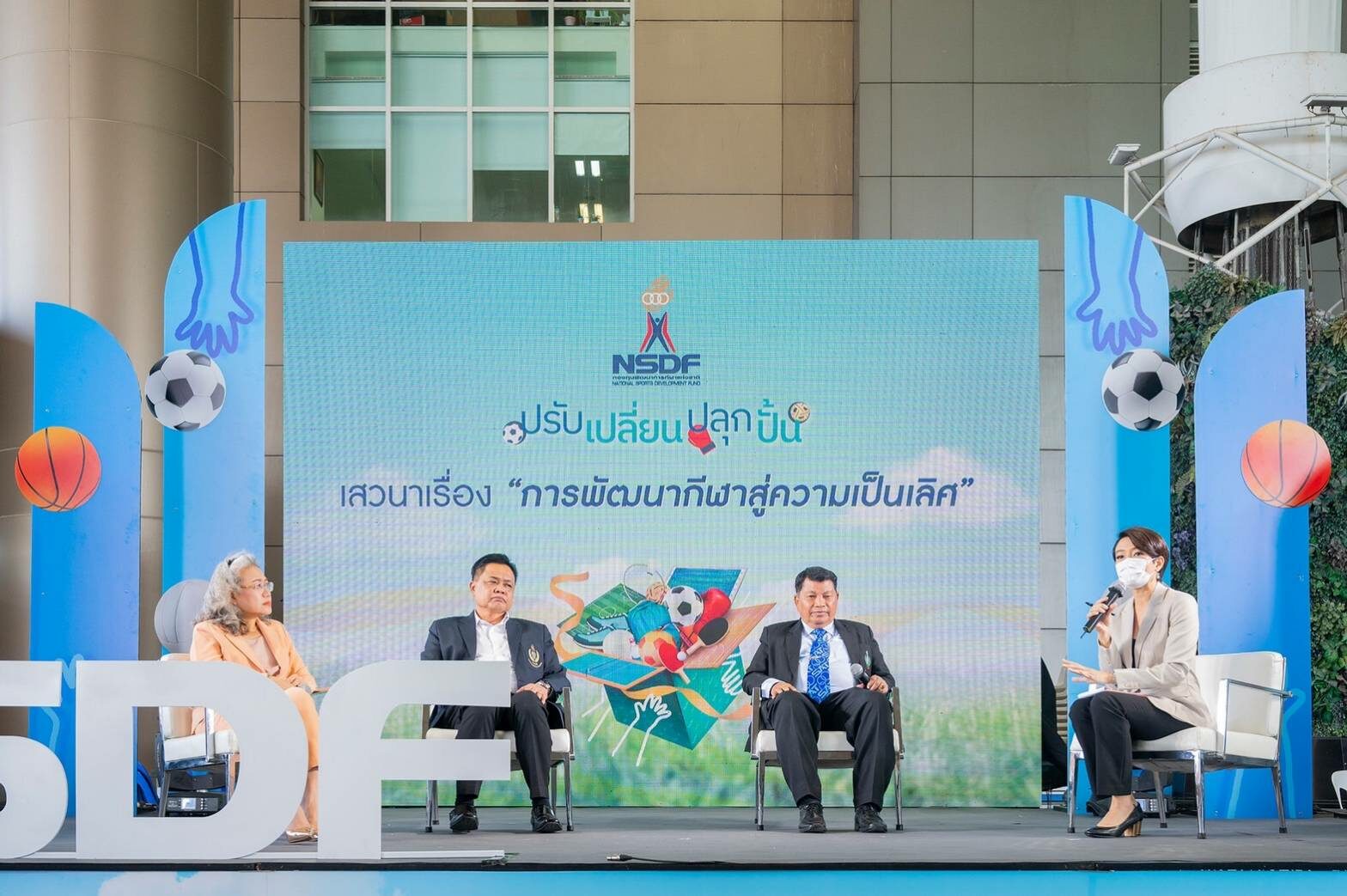 นอกจากจะมีการปล่อยคาราวานรถโครงการ ปรับ เปลี่ยน ปลุก ปั้น เพื่อเป็นสัญลักษณ์ของการคิกออฟโครงการอย่างเป็นทางการแล้ว ภายในงานยังจัดให้มีการเสวนาในหัวข้อ “การพัฒนากีฬาสู่ความเป็นเลิศ” โดยมี นายวินัย ทองรัตน์ กรรมการบริหารกองทุนพัฒนาการกีฬาแห่งชาติ พร้อมด้วย นายประชุม บุญเทียม รองผู้ว่าการการกีฬาแห่งประเทศไทย (กกท.) ฝ่ายกีฬาเป็นเลิศและวิทยาศาสตร์การกีฬา และนายชนาสิน สิมะดำรงค์ รองผู้จัดการกองทุนพัฒนาการกีฬาแห่งชาติ ร่วมเสวนา
