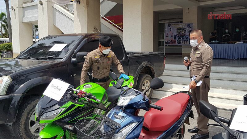 จำนวน 9 รายการ ประกอบด้วย รถกระบะ อีซูุ ดีแม็กซ์สีดำ ทะเบียน ผข 3655 ราชบุรี ราคาประมาณ 400,000 บาท รถจยย.ฮอนด้า รุ่นเวฟ 125ไอ ทะเบียนป้ายแดง ราคาประมาณ 60,000 บาท รถจยย.ยามาฮ่า อาร์15 สีดำ ทะเบียน 3ขอ 6638 กทม ราคาประมาณ 95,000 บาท รถจยย.คาวาซากิ นินจา300 สีเขียว ไม่ติดแผ่นป้ายทะเบียน ราคาประมาณ 250,000 บาท