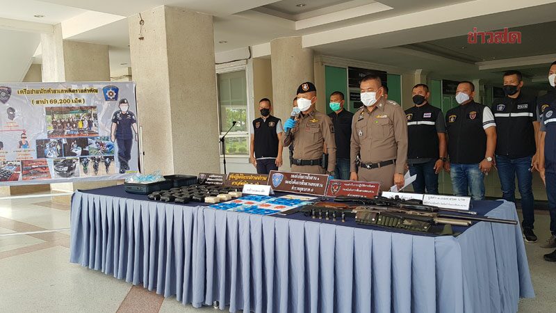 วันที่ 1 มิ.ย.2565 พล.ต.ท.ธนายุตม์ วุฒิจรัสธำรงค์ ผบช.ภ.7 พล.ต.ต.บุญญฤทธิ์ รอดมา รอง ผบช.ภ.7 พล.ต.ต.ปรีดา อิ่มเจริญ หน.ชปส.ภ.7 พล.ต.ต.ประสพชัย มัตสยะวานิชกูล ผบก.สส.ภ.7 พ.ต.อ.ต่อวงศ์ พิทักษ์โกศล ผกก.ปพ.บก.สส.ภ.7 พ.ต.อ.ณัฐพิสิษฐ์ รัตนอุดมผล ผกก.สส.1 บก.สส.ภ.7 ร่วมแถลงข่าวจับกุม 2ผู้ต้องหาเครือข่ายค้ายารายสำคัญ เครือข่ายนายหม่องลือ