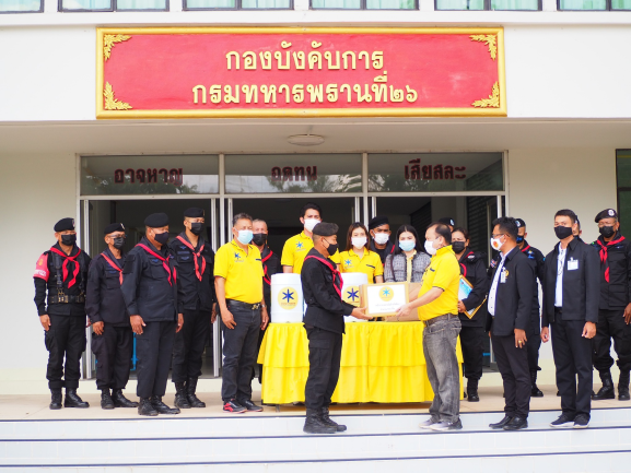 พุธที่ 19 พ.ค.64 ขจรศักดิ์ ประดิษฐาน หัวหน้าพรรคยุทธศาสตร์ชาติ มอบหมายให้ เกียรติภูมิ ม่วงงาม รองหัวหน้าพรรคฯ พร้อมคณะทีมงาน เดินทางไปลงพื้นที่ ค่ายปักธงชัย กรมทหารพรานที่ 26 ตำบลภูหลวง อำเภอปักธงชัย จังหวัดนครราชสีมา เพื่อมอบน้ำยาฆ่าเชื้อ COVID-19 จำนวน 100 ลิตร และ มอบหน้ากากอนามัยทำจากผ้ามัสลินอย่างดี จำนวน 500 ชิ้น