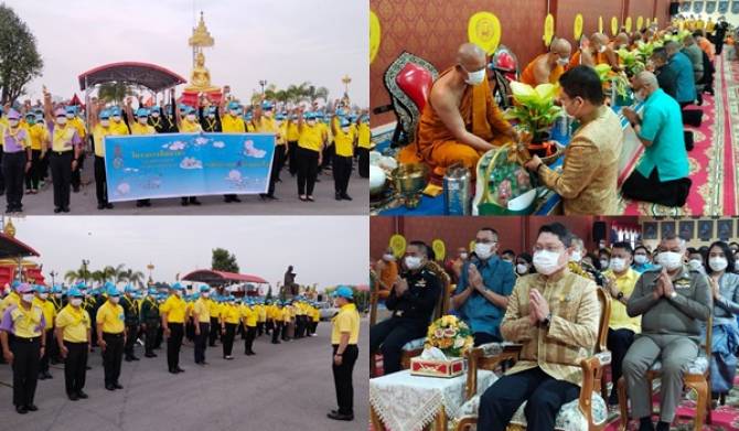 ทั้งนี้ ภายในพิธีมีพระปิยทัสสี เจ้าคณะจังหวัดราชบุรี (ธรรมยุต) เจ้าอาวาสวัดอมรินทราราม เป็นประธานสงฆ์ให้ศีล และนำพระสงฆ์สมณศักดิ์ 10 รูป เจริญพระพุทธมนต์เพื่อความเป็นสิริมงคล โดยมี ข้าราชการ และเจ้าหน้าที่ จากส่วนราชการ พร้อมประชาชนที่พร้อมใจสวมใส่ชุดผ้าไทย ผ้าลายขอ เข้าร่วมพิธีอย่างพร้อมเพรียง