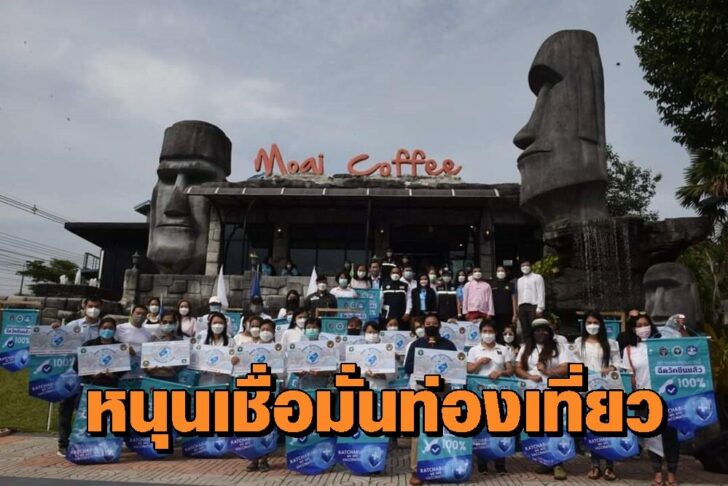 วันที่ 5 พ.ย.64 จังหวัดราชบุรีจัดพิธีมอบสัญลักษณ์ธงและเข็มกลัดส่งเสริมมาตรการรองรับนักท่องเที่ยว เพื่อเตรียมการเปิดพื้นที่นำร่องการท่องเที่ยวจังหวัดราชบุรี โดยมีแพทย์หญิงปาจรีย์ อารีย์รบ นายแพทย์สาธารณสุขจังหวัดราชบุรี เป็นประธาน มีนายอดุลย์ ถาวรกุล นายอำเภอสวนผึ้ง ส่วนราชการ และหน่วยงานที่เกี่ยวข้องร่วมเป็นสักขีพยานในการมอบสัญลักษณ์ในส่งเสริมมาตรการรองรับนักท่องเที่ยว ที่ร้านกาแฟโมอาย คอฟฟี่ อำเภอสวนผึ้ง จังหวัดราชบุรี