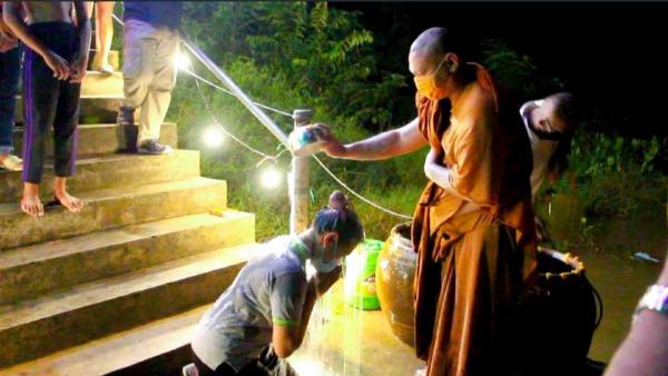 วัดตึก ราชบุรีจัดพิธีอาบน้ำมนต์จันทร์เพ็ญเดือน 12 ลูกศิษย์ของขึ้นโดยพลัน