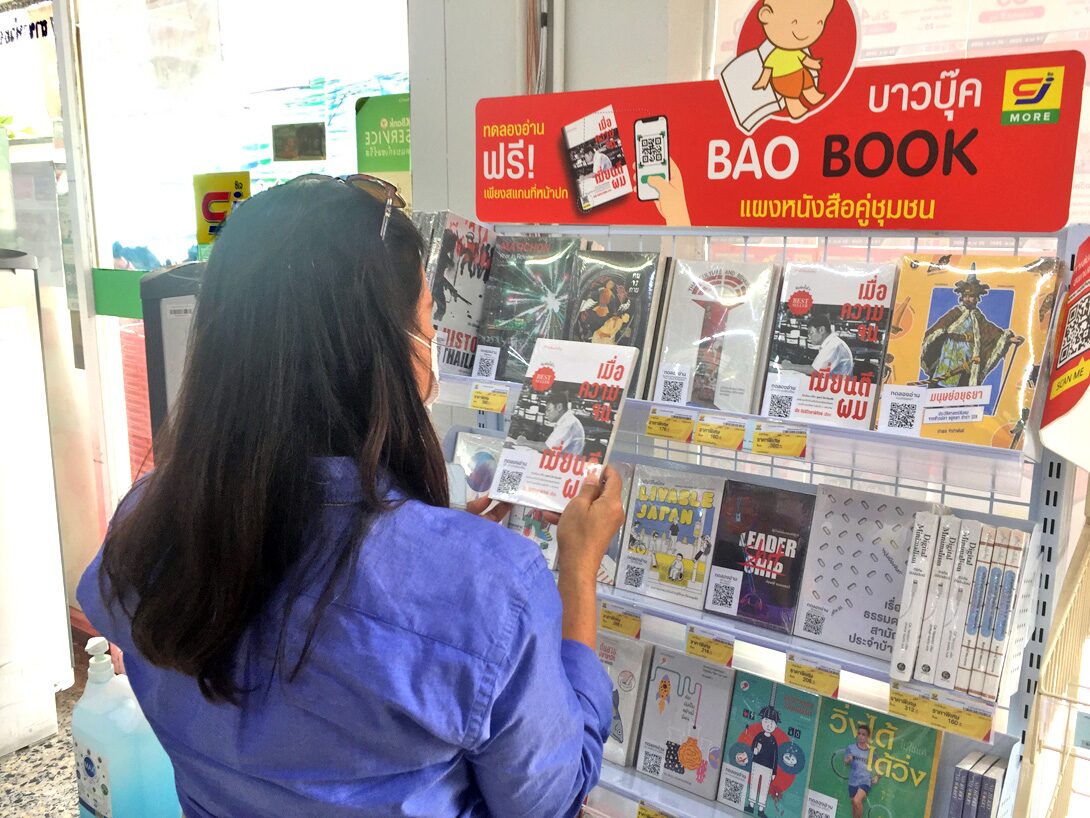 กว่า 1 เดือนนับแต่วันนั้นจนถึงวันนี้ ลูกค้าที่จับจ่าย ณ ซีเจ ซูเปอร์มาร์เก็ต แวะเวียนชมแผง ‘BAO BOOK’ บาวบุ๊ค เลือกเล่มสะดุดตาสแกนคิวอาร์โค้ดทดลองอ่านฟรีก่อนตัดสินใจซื้อหากลับบ้านด้วยราคาพิเศษลดแบบจุใจ ไม่มีเงื่อนไข 20% ทุกเล่ม