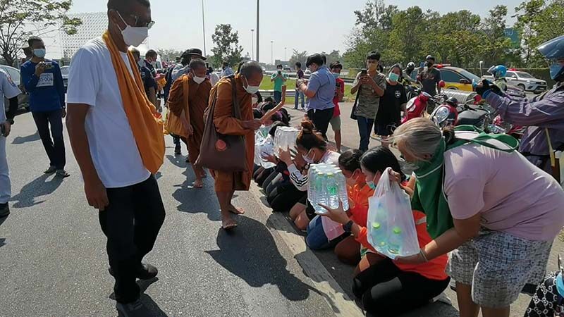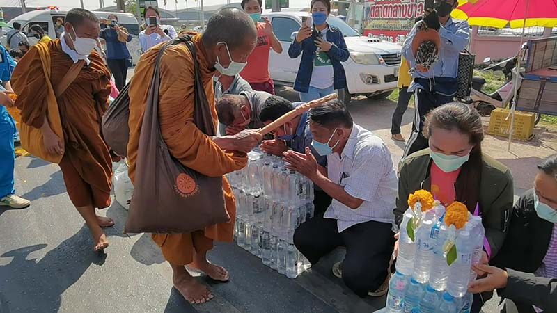 หลวงตาบุญชื่น ธุดงค์เท้าเปล่าจากภูเก็ต เข้าราชบุรีแล้ว ปชช.รอกราบไหว้ตลอดทาง จำวัด 1 คืน ก่อนออกธุดงค์รุ่งเช้าไป อ.เมืองราชบุรี