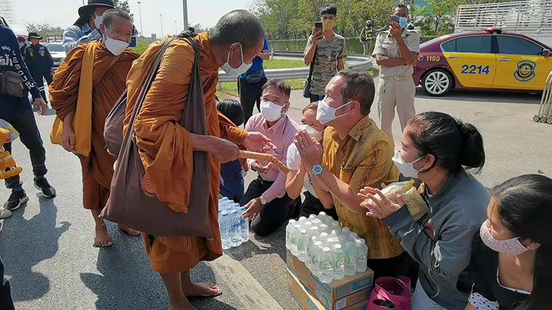 นายสุธี เล้าสุบินประเสริฐ นายอำเภอปากท่อ พร้อมด้วยชาว อ.ปากท่อ และจากต่างจังหวัดที่เดินทางผ่านเส้นทางดังกล่าวจำนวนมากที่ทราบข่าว นำน้ำดื่ม นม และพวงมาลัยดอกไม้สด มารอถวายหลวงตาบุญชื่นตลอดเส้นทาง ท่ามกลางการอำนวยความสะดวกของเจ้าหน้าที่ตำรวจ สภ.ปากท่อ และเจ้าหน้าที่มูลนิธิประชานุกูลราชบุรี