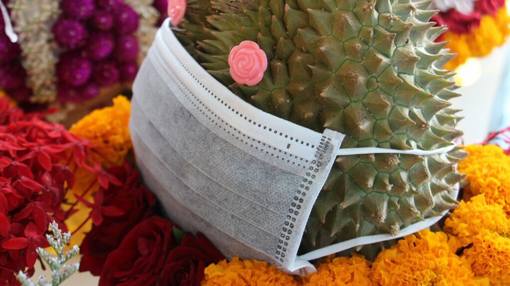 แต่ที่น่าสนใจแปลกแหวกแนวไม่เหมือนใครในประเภทความคิดสร้างสรรค์ คือ นักเรียนชั้นมัธยมศึกษาปีที่ 2/1 ได้นำลูกทุเรียนซื้อมาในราคาลูกละ 300 บาท มาวางใส่ไว้บนพาน พร้อมนำหน้ากากอนามัยมาปิดคาดที่ลูกทุเรียน ด้านบนตกแต่งด้วยธูปเทียนแพ ด้านล่างตกแต่งด้วยดอกดาวเรือง ด้วยกลิ่นทุเรียนที่สุกเต็มที่ทำส่งกลิ่นหอมออกมากระจายทั่วห้อง สร้างความฮือฮาเป็นอย่างมาก เพราะบางคนก็ชอบกลิ่นอยากกินทุเรียน แต่บางคนก็ไม่ชอบกลิ่นทุเรียน แต่อยากกินทุเรียน การตัดสินจึงได้รับรางวัลประเภทความคิดสร้างสรรค์ อันดับที่ 3 ได้รางวัลประกาศเกียรติบัตร พร้อมขนมปังปี๊บไป 1 ปี๊บเป็นรางวัล