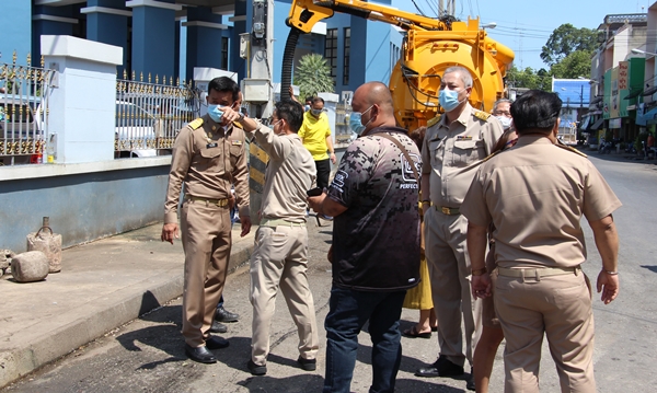 เมื่อวันที่ 17 พ.ค.64 นายกฤษฎา ประดิษฐ์กุล นายกเทศมนตรีเมืองบ้านโป่ง อ.บ้านโป่ง จ.ราชบุรี มอบหมายให้ นายธนากร เลี้ยงฤทัย รองนายกเทศมนตรีเมืองบ้านโป่ง ดูแลงานกองสาธารณสุขและสิ่งแวดล้อมเทศบาลเมืองบ้านโป่ง นำเจ้าหน้าที่และพนักงานทำความสะอาดของกองสาธารณสุขและสิ่งแวดล้อม พร้อมรถดูดจากกองช่าง ดำเนินการล้างทำความสะอาดถนนตลาดสดริมน้ำ และบริเวณถนนรอบและภายในศาลาประชาคมเทศบาลเมืองบ้านโป่ง ซึ่งการล้างทำความสะอาดในครั้งนี้ ร.ต.อ.พรศักดิ์ วัชรจินดา รอง (สารวัตรจราจร) สภ.บ้านโป่ง และทางเจ้าหน้าที่เทศกิจ ได้นำรถติดเครื่องขยายเสียง ประชาสัมพันธ์ขอความร่วมมือบรรดาพ่อค้าแม่ค้า ให้ทำการเก็บสิ่งของและสินค้าที่วางขายอยู่ริมถนนออกไป โดยทางเจ้าหน้าที่เทศบาลได้ล้างทำความสะอาดพื้นถนน พร้อมนำรถดูด ทำการลอกท่อระบายน้ำ นอกจากนั้นแล้ว นายอัครเดช วงษ์พิทักษ์โรจน์ ส.ส.ราชบุรี เขต 4 ยังได้ประสานนำรถฉีดพ่นยาฆ่าเชื้อ พร้อมเจ้าหน้าที่กองสารวัตรและกักกันของกรมปศุสัตว์ราชบุรี มาร่วมทำการฉีดพ่นน้ำยาฆ่าเชื้อทำความสะอาดป้องกันการแพร่ระบาดไววัสโควิด-19