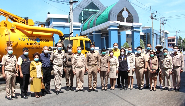เทศบาลบ้านโป่ง ทำความสะอาดศาลาประชาคม รองรับประชาชนฉีดวัคซีน