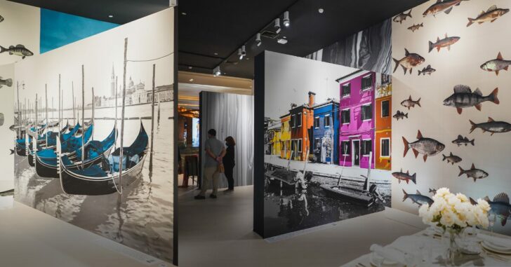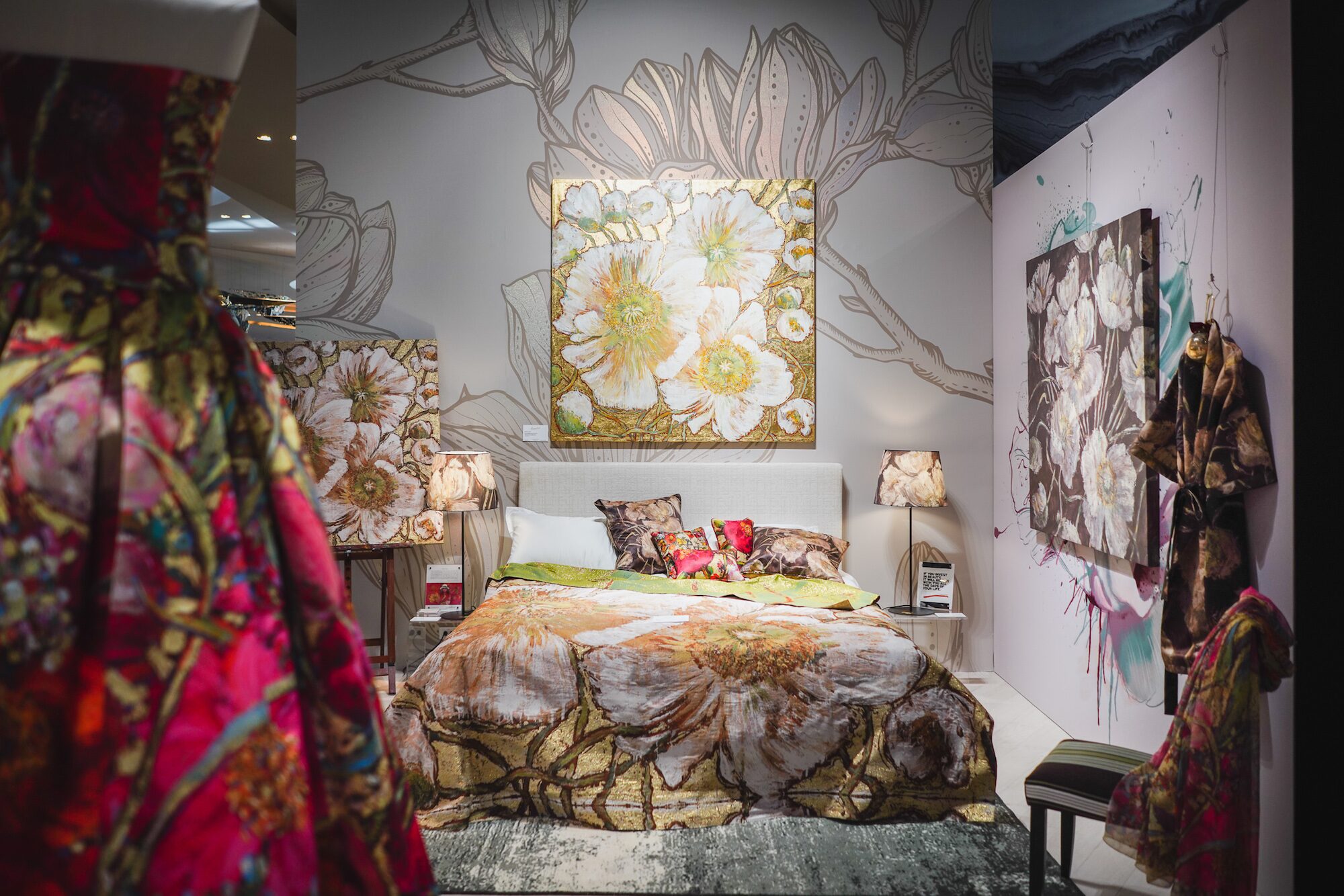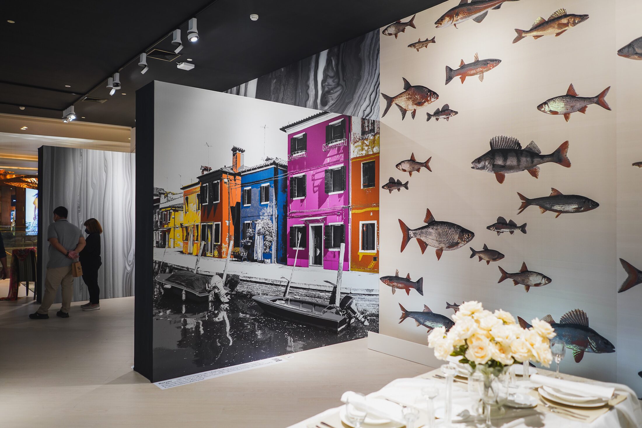 ซึ่งแต่ละภาพเต็มไปด้วยรายละเอียดอันซับซ้อนและละเมียดอ่อนช้อย ถ่ายทอดลงบนผ้าทอขนาดใหญ่หรือที่เรียกกันว่า “Textile Wall Mural” หรือ จิตรกรรมฝาผนังจากผ้าทอขนาดมหึมา ซึ่งถือเป็นศิลปะและงานฝีมือชั้นสูงด้วยกรรมวิธีการสรรค์สร้างที่ต้องใช้ทั้งเวลา เทคนิค และความสามารถของช่างฝีมือเพื่อให้ได้ภาพที่มีลวดลายอันเป็นเอกลักษณ์และมีราคาสูง